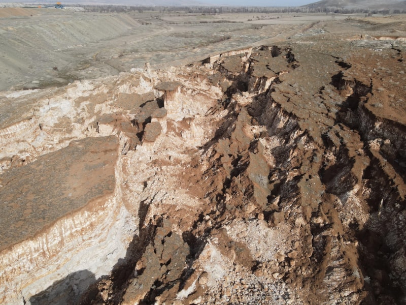 Kahramanmaraş'ın Afşin ilçesi sınırlarında fay hattının başlangıç noktası olarak değerlendirilen bir arazide oluşan dev yarıklar görenleri korkuttu.