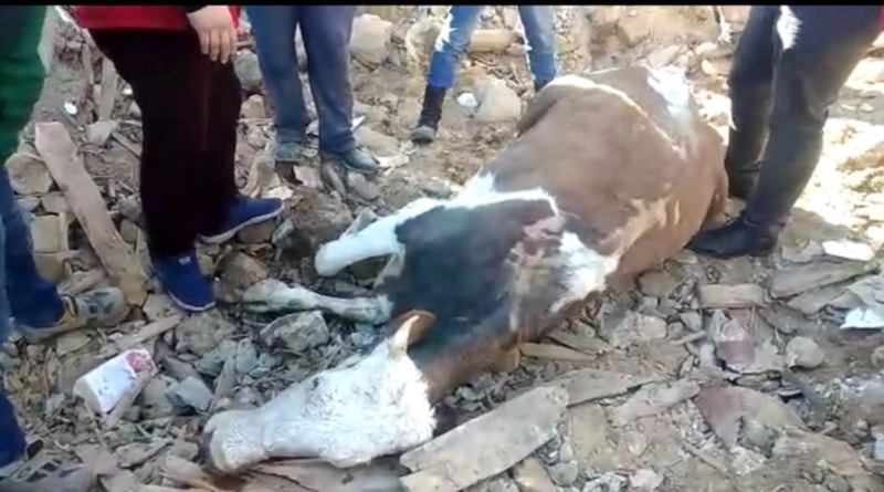 İş makinesinin yardımıyla enkaz kaldırılırken bir inek bulunduğu tespit edildi.