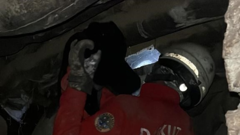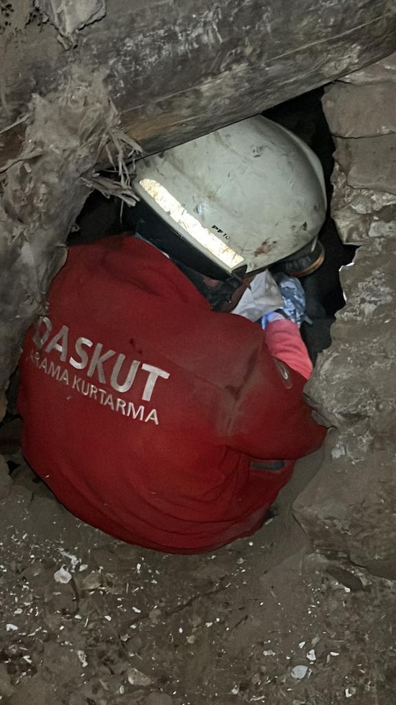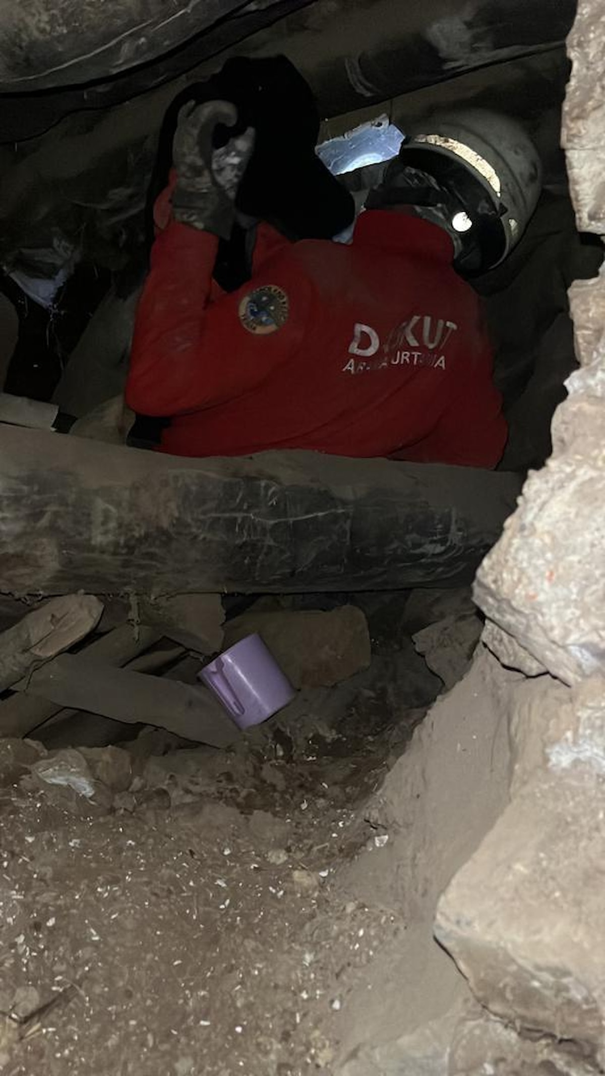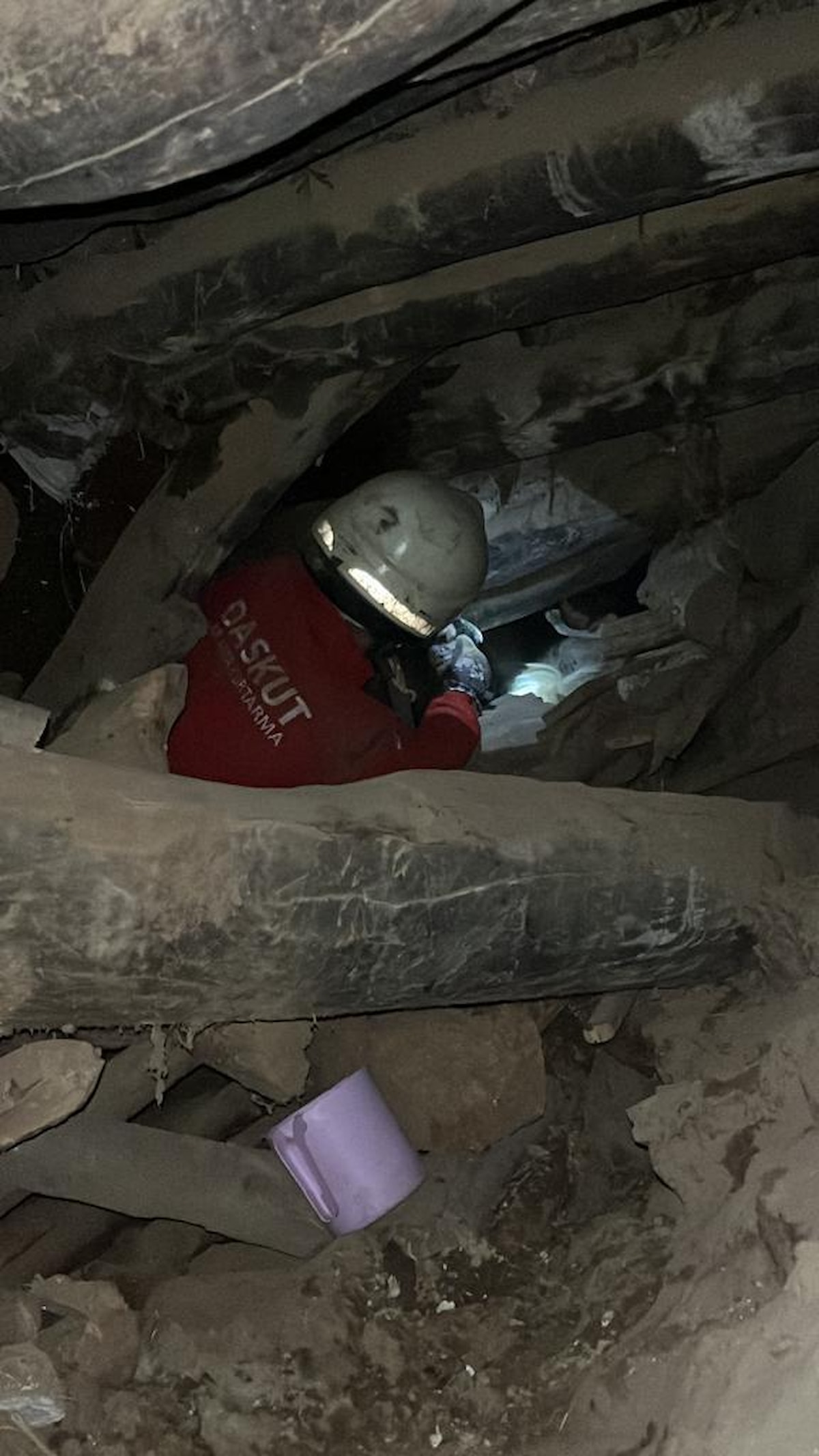 Kahramanmaraş’ın Göksun ilçesine bağlı Karadut köyünde sağlık taraması ve depremzedelere yardım için bulunan DASKUT Arama Kurtarma Derneği ekipleri, ihbar üzerine yaptıkları çalışmada canlı hayvan sesine ulaştı.