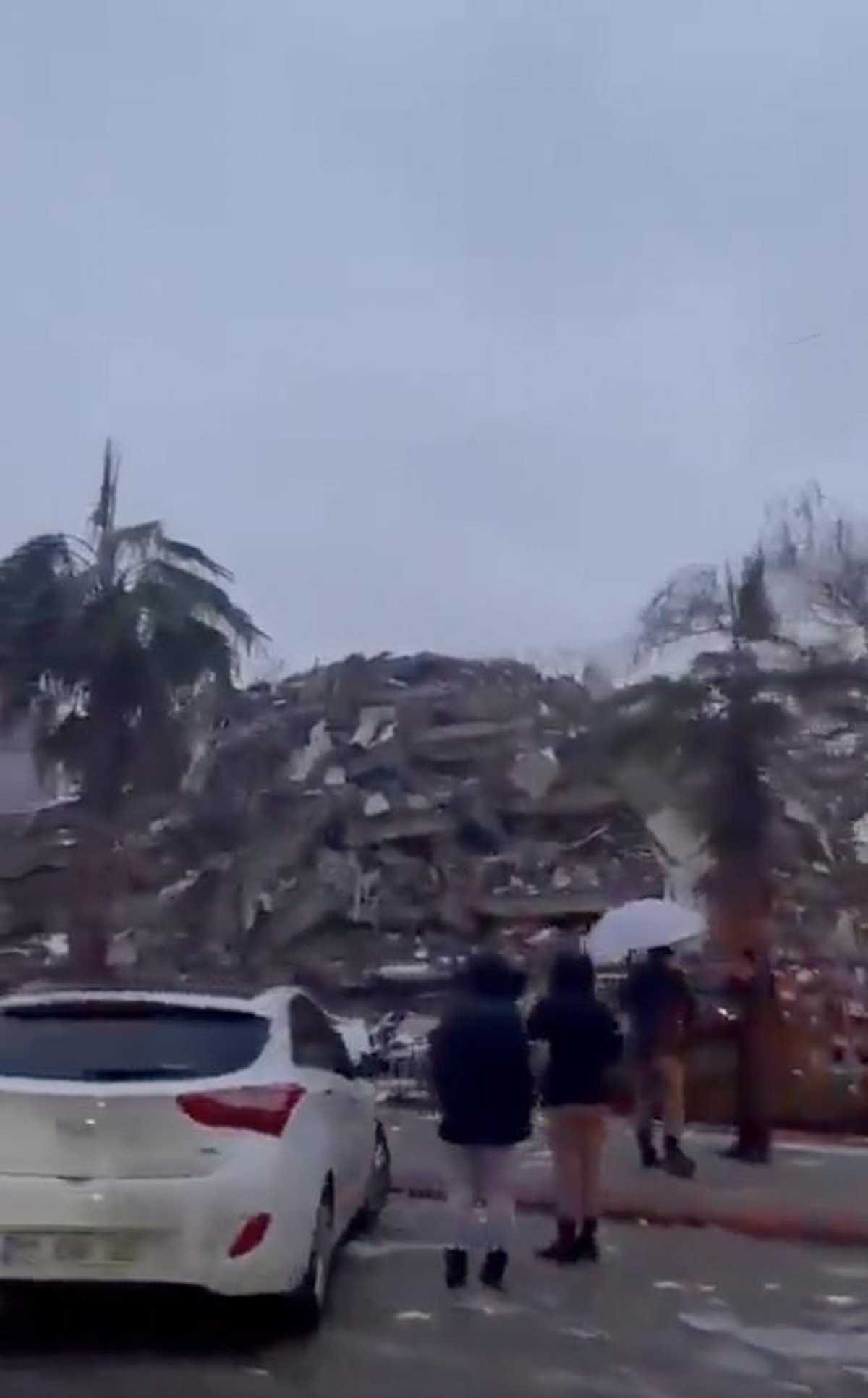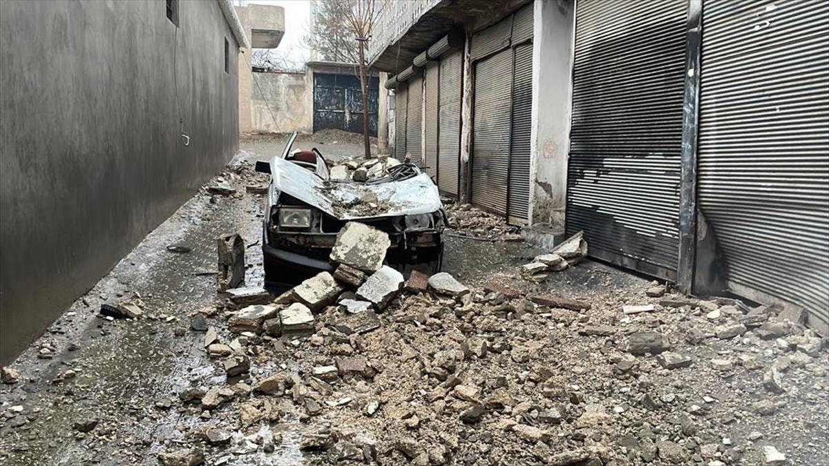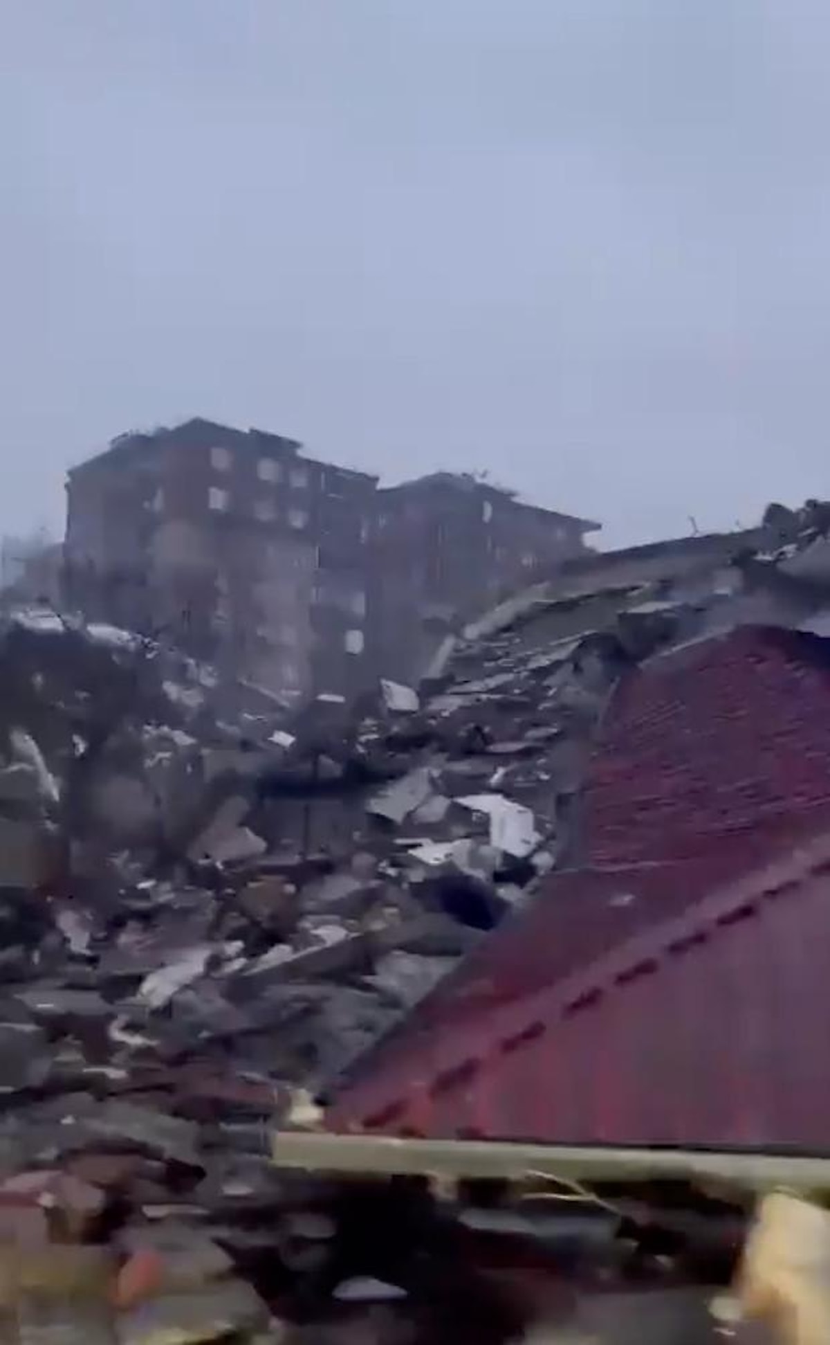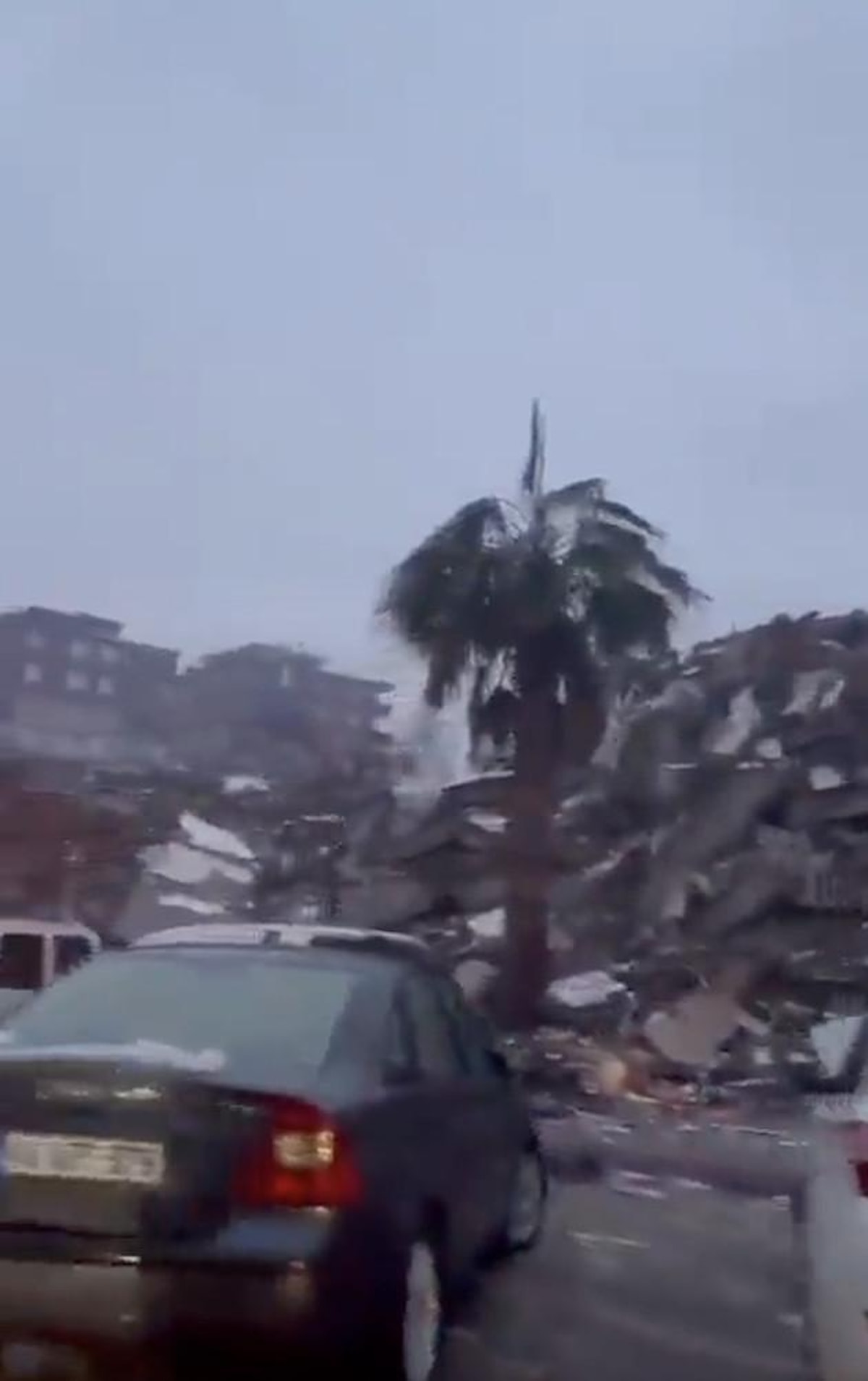Şehirdeki bir cadde boyunca yıkılan binalar ve telaşla yakınlarına ulaşmaya çalışan insanlar kameralara yansıdı.