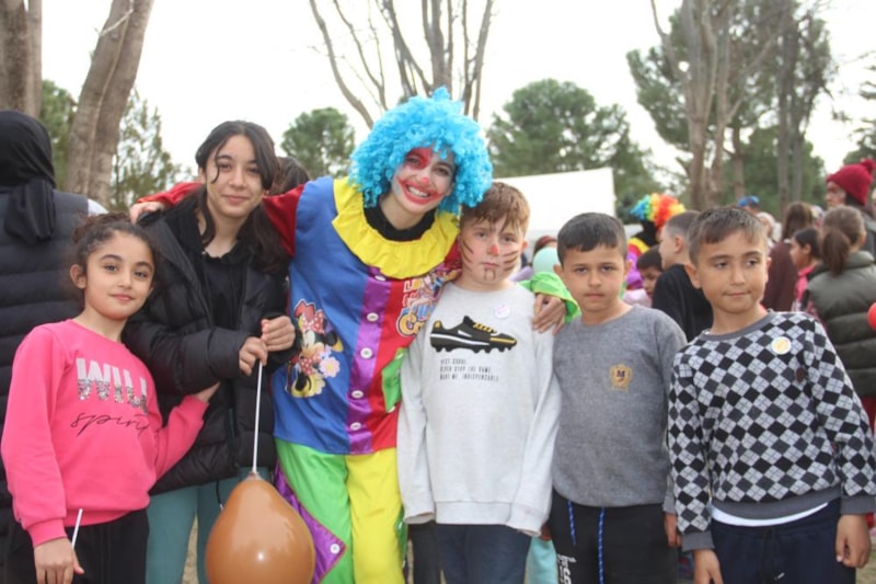 Kahramanmaraş’ta yaşayan depremzede çocuklar için Şanlıurfa'dan gelen gönüllü palyaçolar, minik depremzedelere unutamayacakları bir gün yaşattı.