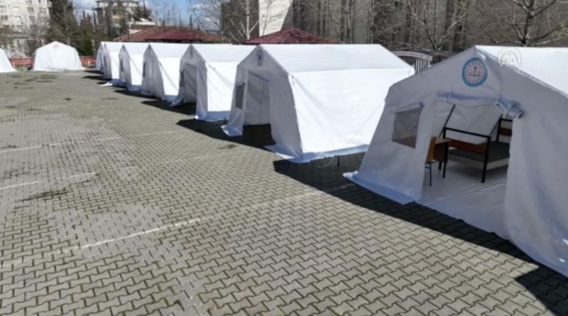 İlçede bulunan 111 okuldaki öğrenci ve öğretmenlerin bağışlarıyla alınan 111 çadır, Antalya'dan gelen gönüllü öğretmenler tarafından Kahramanmaraş'ta yatılı bölge okullarının kampüs bölgesinde kuruldu.