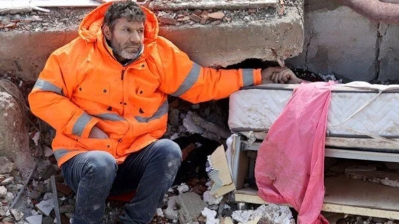 6 Şubat'ta depreme yakalanır yakalanmaz ailesinin yanına koşan ve beton yığınları arasında kızının cansız bedenini bulan acılı babanın elini tutarak beklediği o anlara ait kare unutulmuyor.
