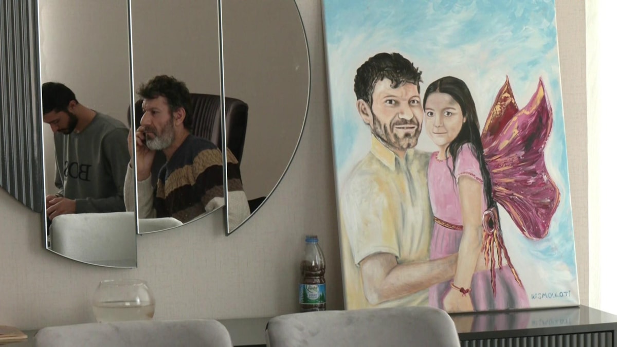 Evin oturma odasına asılan ve bir ressamın hediye ettiği tablo yürekleri dağladı. Tabloda kızı Irmak babasıyla birlikte resmedildi.