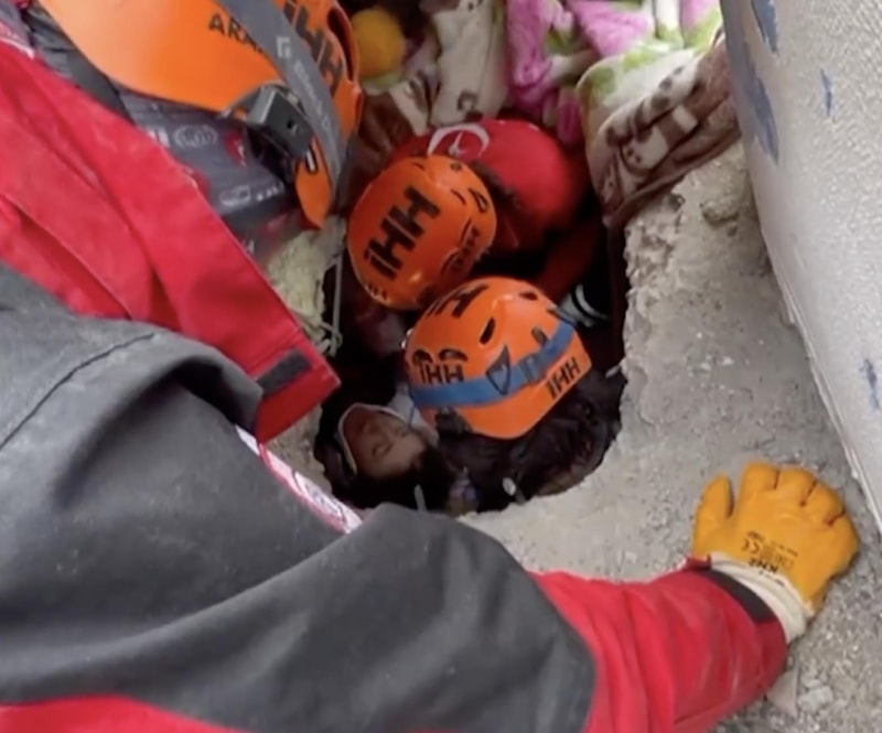 Genç UMKE görevlisi kızın enkaz altındaki anne ve babasına destek verdiği anlar, kurtarma ekiplerince görüntülendi.