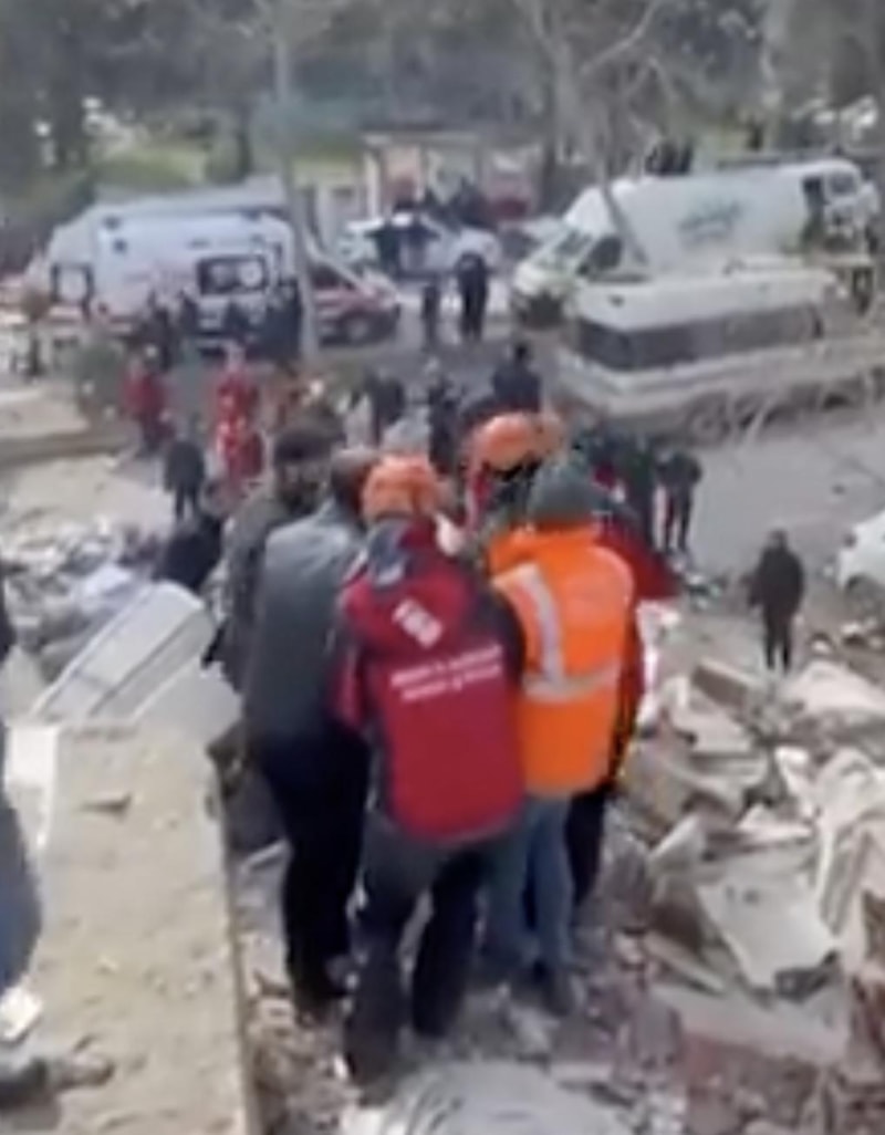 Kahramanmaraş şehir merkezinde Hayrullah Mahallesi Kuddusi Baba Bulvarı üzerinde yıkılan Üçgözler Apartmanı'nda çalışmalarını yürüten ekipler, öğlen saatlerinde yıkıntılar arasından seslerin geldiğini belirledi.