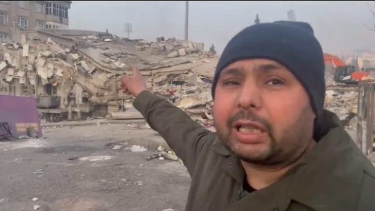NTV Muhabiri Yağız Şenkal tarafından Kahramanmaraş'ta kaydedilen bir videoda, ismi Kemal Yalçın olduğu öğrenilen bir depremzede, kentte yıkılan bir binayla ilgili gerçeği anlattı.
