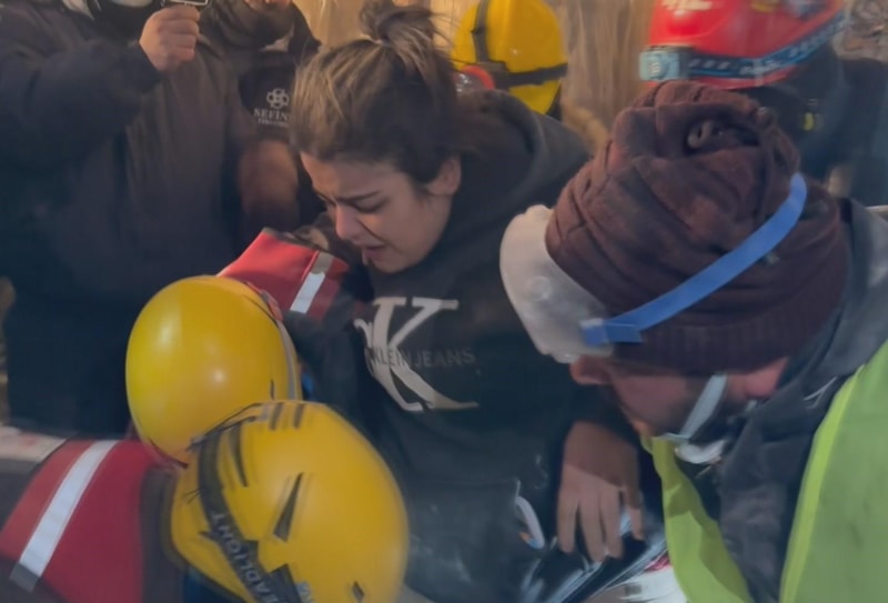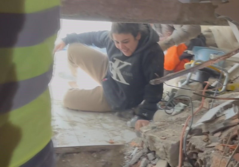 Ekipler, depremden 70 saat sonra, Onikişubat ilçesi Hayrullah Mahallesi Sandalzade Bulvarı Yeşilada Apartmanı enkazında 22 yaşındaki Leyla Akçam'a ulaşarak sağ olarak kurtardı.