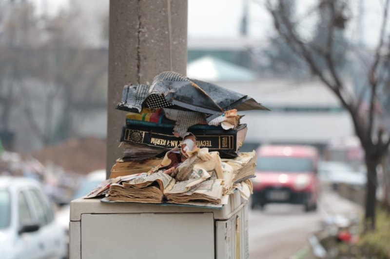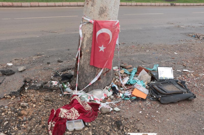 Depremin merkezinde kaydedilen görüntüler hüzünlü anlara neden oluyor. Enkazdan çıkan Türk bayrakları ile Kur’an-ı Kerim ve dini kitaplar, ağaç dalları ve gövdelerine bırakılıyor.