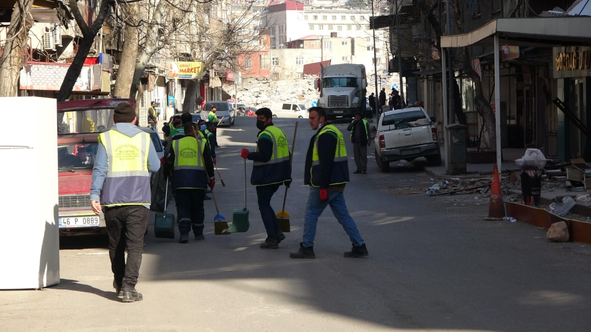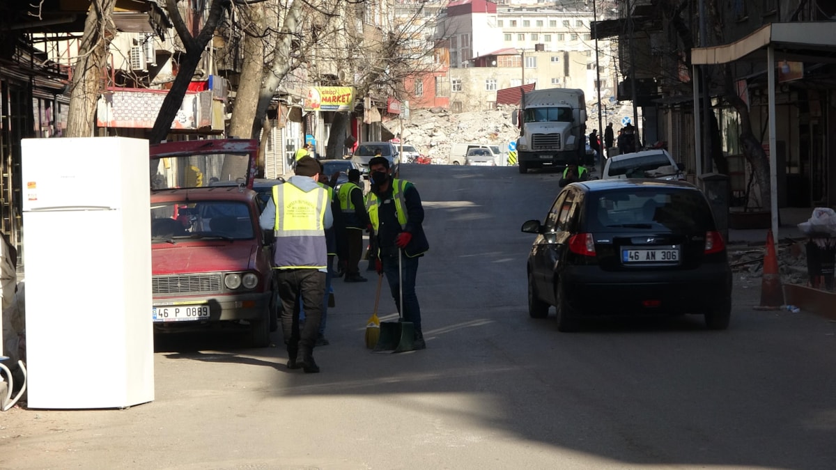 Diğer yandan da belediye personeli tarafından enkaz çalışmalarının yanı sıra sokaklar da temizleniyor.