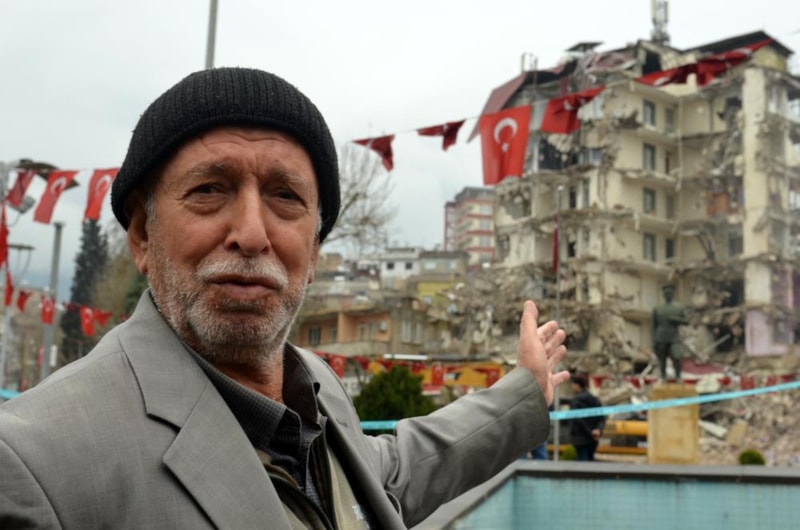 Ortalık tarumar oldu, içerisinde alacaklarımız vardı fakat bir şey alamadık. Geçimizi buradan sağlıyorduk, yıkılınca her şeyimiz gitti. Elimizden bir şey gelmiyor sadece uzaktan seyrediyoruz. Birinci depremde çok fazla hasar almamıştı. İkinci deprem vurunca binayı tarumar etti. Yaklaşık 40 yıllık bir binaydı.