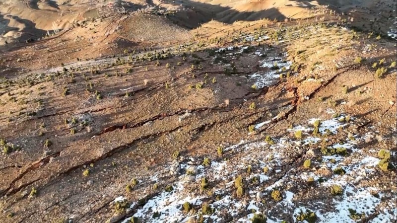 Afşin belediyesinin deprem sonrası bölgede yaptığı drone çekimlerinde Berit dağını neredeyse ikiye ayıran fay kırıkları depremin yıkıcı etkisini bir kere daha gösterdi.