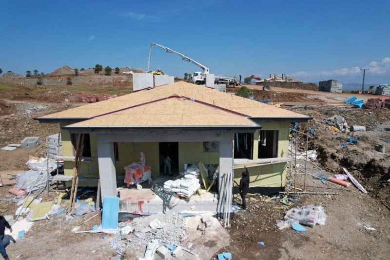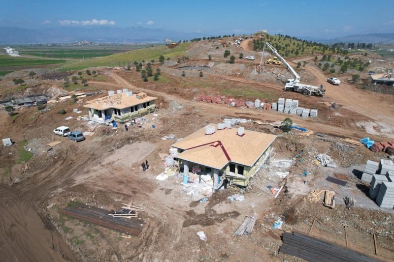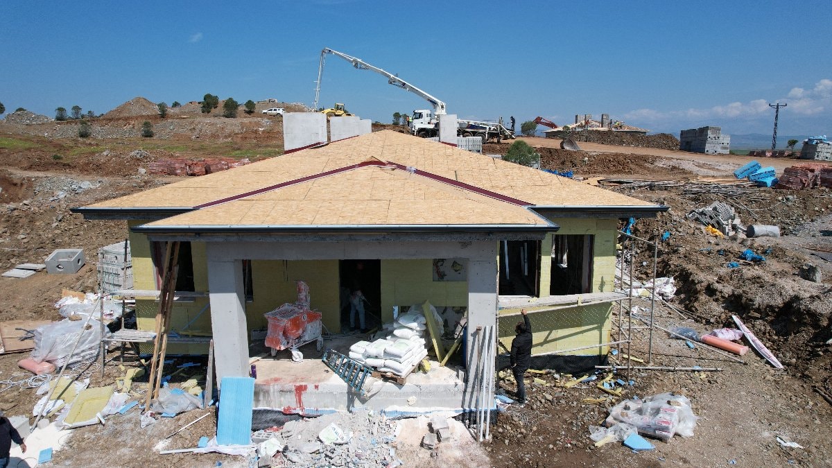 Depremzede hak sahiplerinin faydalanması için köy evleri projesi çerçevesinde Türkoğlu’nun kırsalındaki Özbek Mahallesi'nde köy evlerinin inşası da hızla sürüyor.