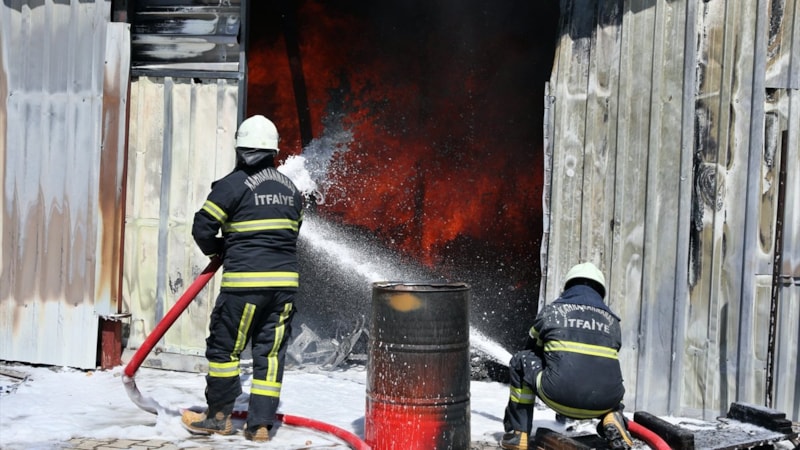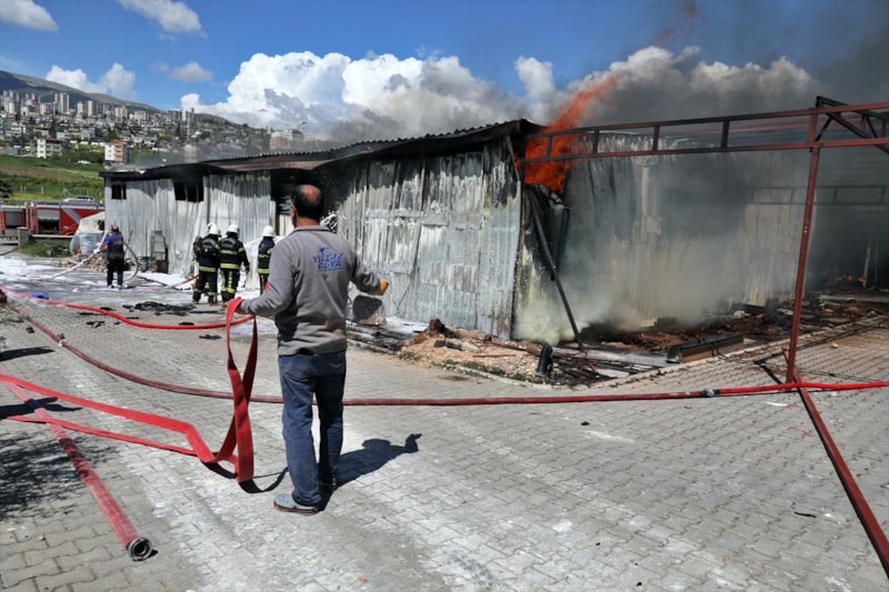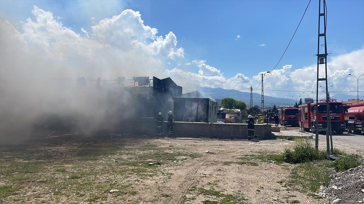 Yangında, işçilerin kalması için bahçeye kurulan bazı konteynerler de hasar gördü.