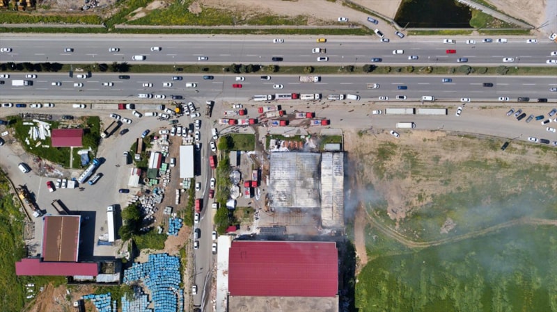 Bölgede, depremlerin ardından hasar almayan bölümünün bir süre önce faaliyete yeniden geçtiği mobilya fabrikasında, henüz belirlenemeyen bir nedenle yangın çıktı. Kumaş dikim bölümü yanarak kullanılmaz hale geldi.