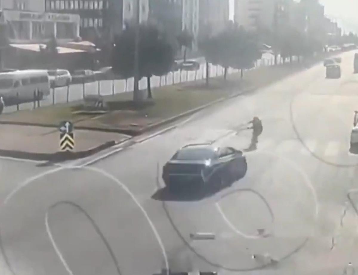 Kaza anı çevredeki güvenlik kameralarına yansıdı.