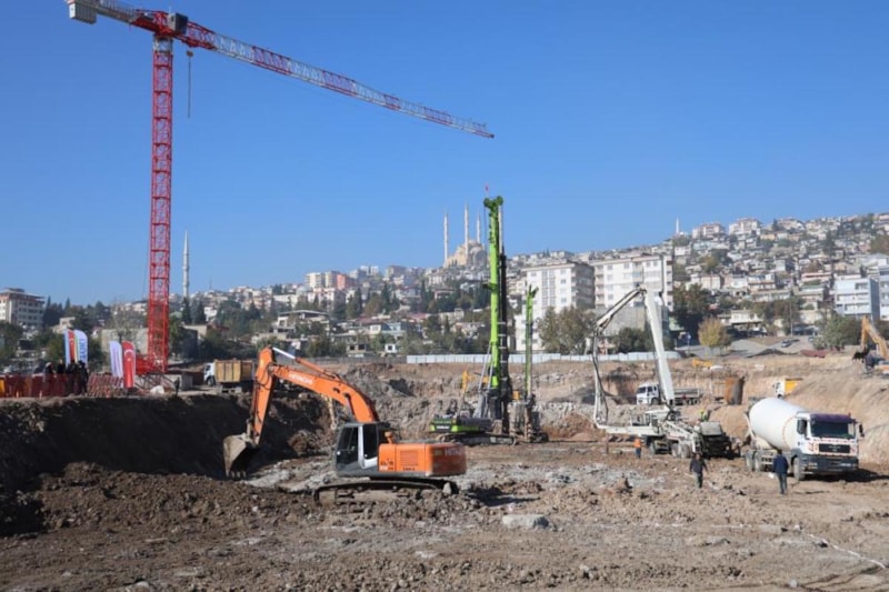 Temel hafriyatlarının kaldırılmasının arından fore kazık ve demir yerleştirme işlemleri ile devam edilen bölgede, bir yandan beton dökme işlemleri de sürüyor.