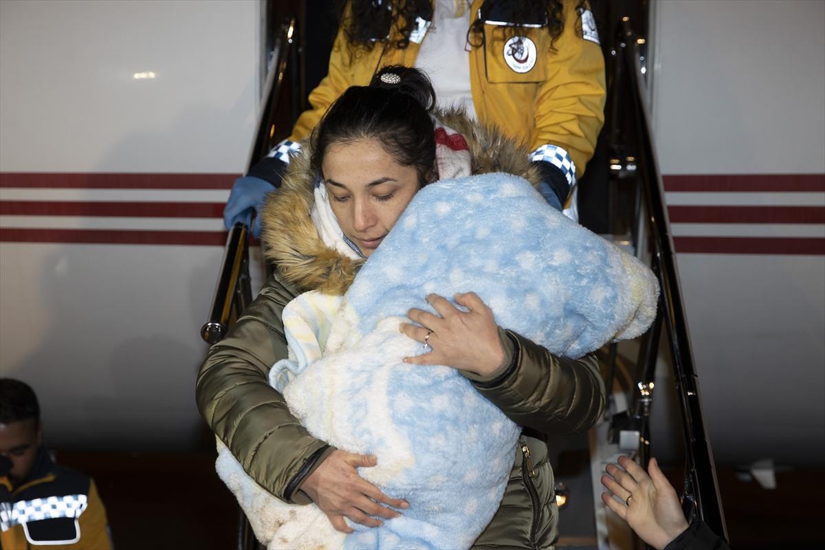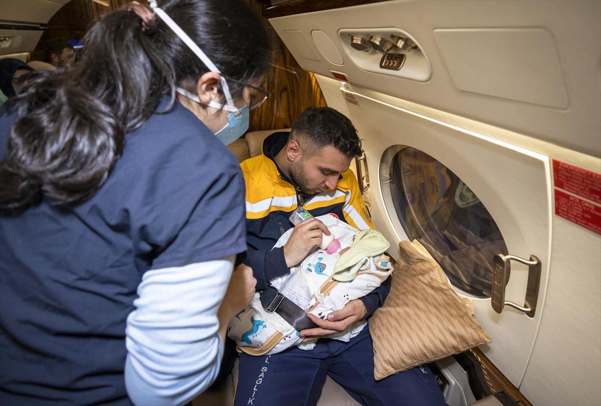 Bebekler, Esenboğa Havaalanı'na inen uçaktan Aile ve Sosyal Hizmetler Bakanlığının bakıcı anneleri tarafından alınarak Etlik Şehir Hastanesi'ne nakledilmek üzere ambulanslara taşındı.