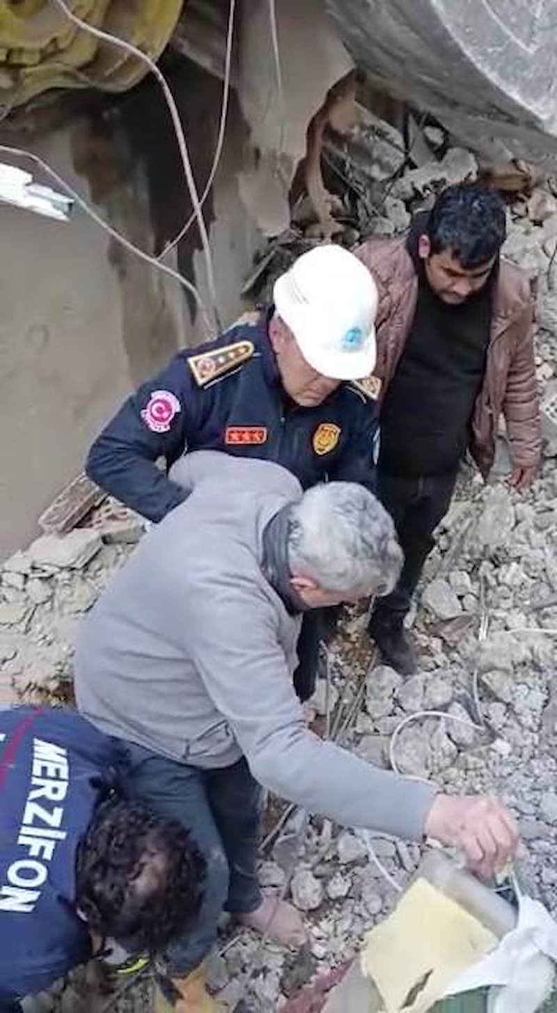 Enkazdan kurtarılan yaşlı adama çizmelerini giydiren itfaiye erleri ile duygusal anlar yaşandı. Afetzede, ayağına bot giydiren itfaiye erine "Sen ne yapacaksın?" dedi.