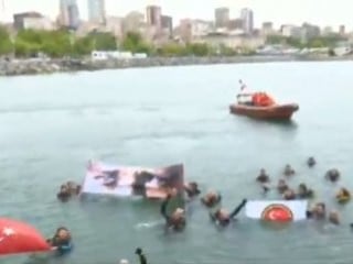 Kadıköy Belediyesi'nin katkılarıyla 25 dalgıç Atatürk'ü anmak için Kalamış sahilinde daldı ve Atatürk'ün gözlerinin yer aldığı pankartı su yüzeyine çıkararak poz verdi.