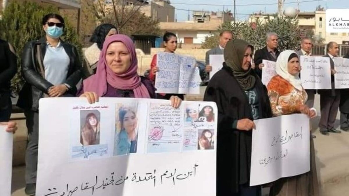 21 Kasım'da terör örgütü YPG/PKK'nın Haseke'nin Amuda ilçesinden kaçırdığı kız çocuklarının anne ve yakınları bugün de Kamışlı ilçesinde örgütü protesto etti.