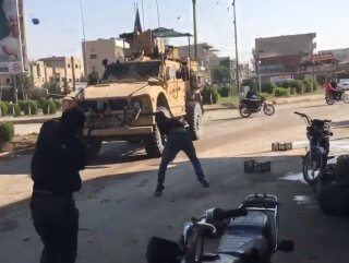 Kamışlı'daki YPG'li teröristler, bölgeden çekilmeye başlayan Amerikan askerlerini taşladı. O anlar, kameralara da yansıdı.