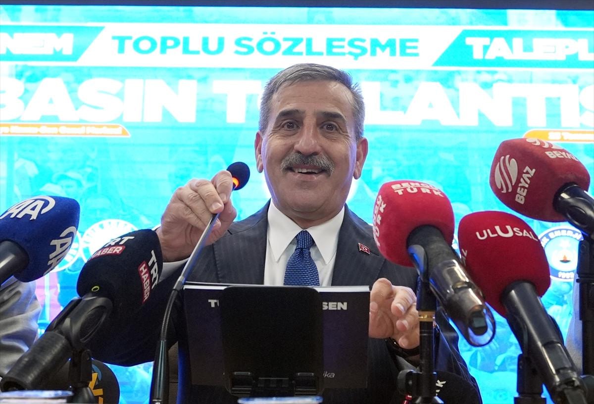 Türkiye Kamu-Sen Genel Başkanı Önder Kahveci, konfederasyon genel merkezinde düzenlediği basın toplantısında, 8. Dönem Toplu Sözleşme görüşmelerinde dile getirecekleri talepleri kamuoyuyla paylaştı.