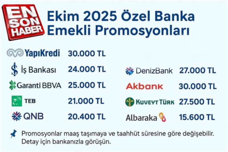 İş Bankası, maaşını bankaya taşıyan veya zaten maaşı İş Bankası’nda olan emeklilere 24.000 TL’ye kadar promosyon fırsatı veriyor. Kampanya Ekim 2025 için geçerli.