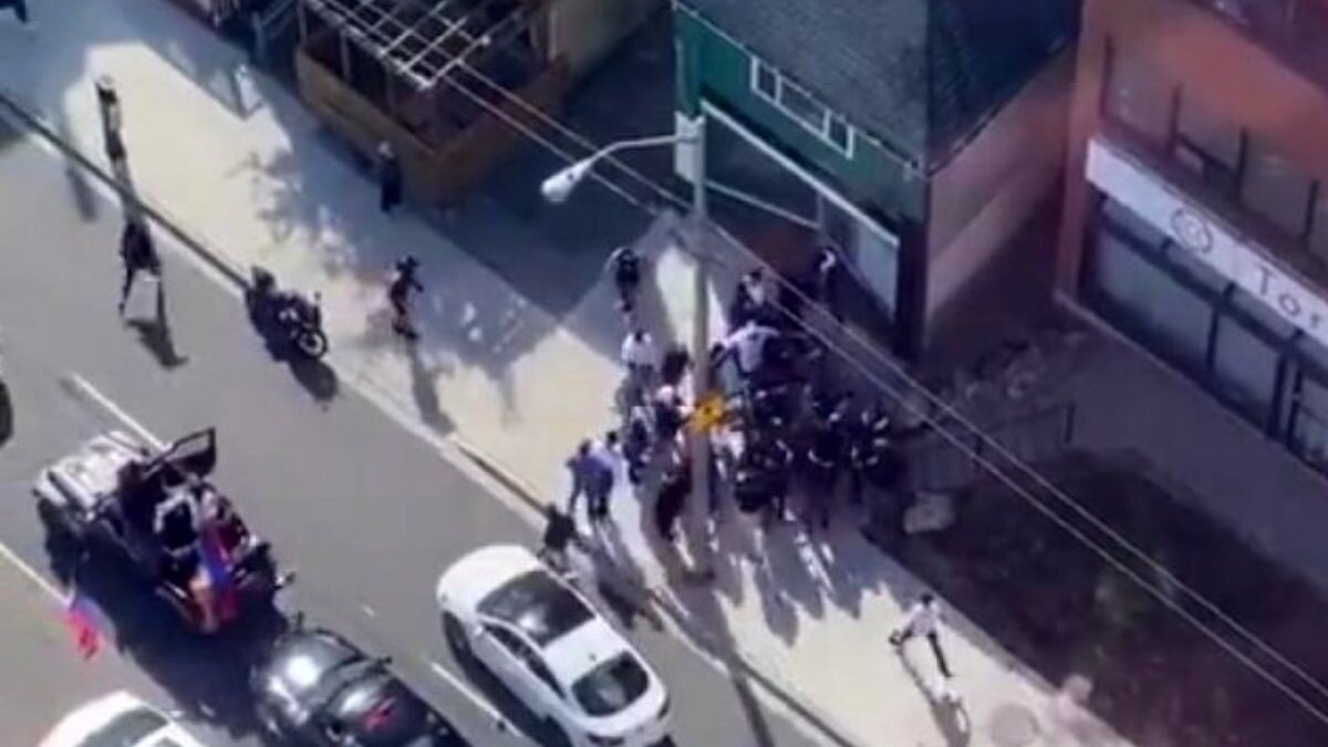 Toronto kentinde de Ermenistan bayraklarıyla donattıkları araçlarıyla konvoy oluşturan Ermeniler, yol kenarında kendilerini protesto eden Türk’ü darbetti.