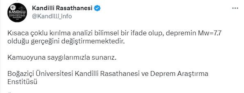 Kısaca çoklu kırılma analizi bilimsel bir ifade olup, depremin Mw=7.7 olduğu gerçeğini değiştirmemektedir.