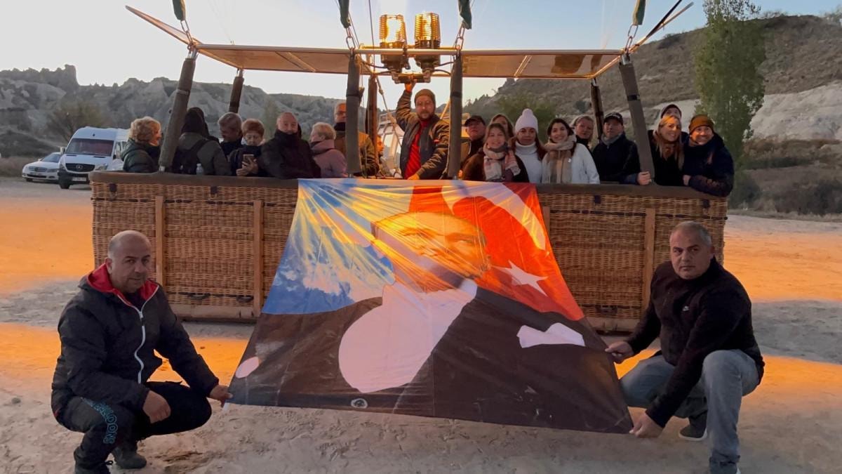 Tura katılanlar, 29 Ekim Cumhuriyet Bayramı’nı Kapadokya semalarında uçarak kutladı.