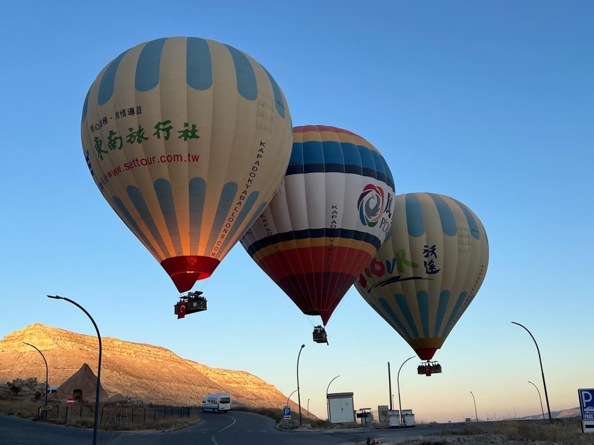 Bayraklarla süslü balonlar; peribacaları, tüf kayalara oyulu mekanlar ve yer altı şehirleri ile ünlü turizm merkezi Kapadokya semalarında eşsiz görüntüler oluşturdu.