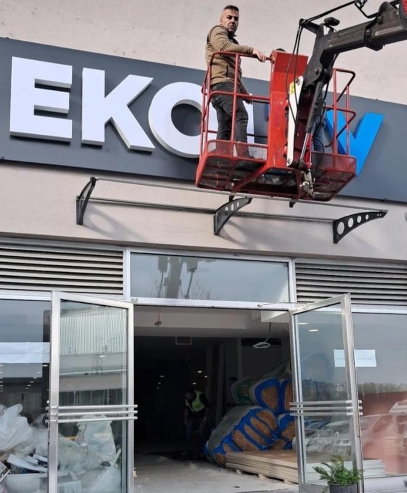 Çalışanlar ofisi boşaltırken, son olarak EKOL TV'nin tabelasının da söküldüğü görüldü.