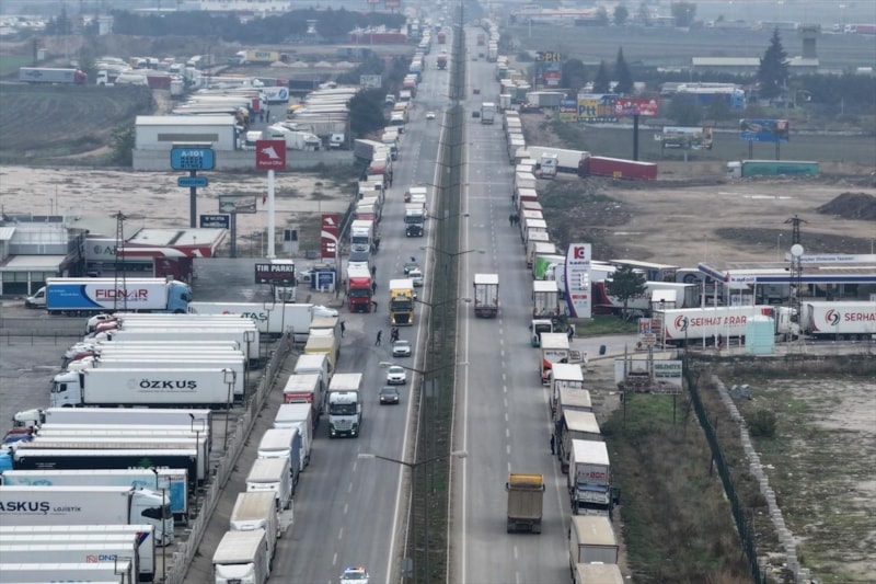 Parklarda yer bulamayan yüzlerce tır, Kapıkule kara yolu üzerinde çift yönlü olarak 7 kilometre kuyruk oluşturdu.