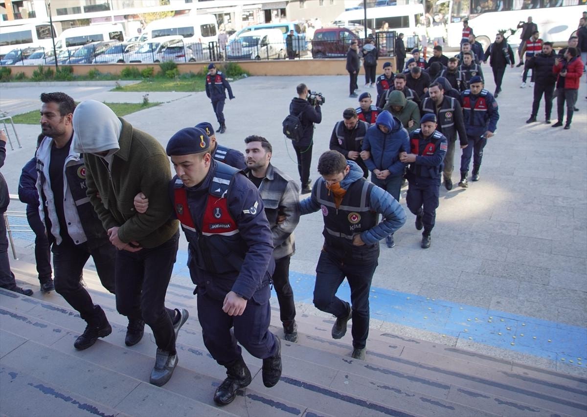 Jandarmadaki işlemleri tamamlanarak Edirne Adliyesi'ne sevk edilen zanlılar, cumhuriyet savcılığındaki sorgularının ardından tutuklanmaları talebiyle Edirne 1. Sulh Ceza Hakimliği'ne çıkarıldı.