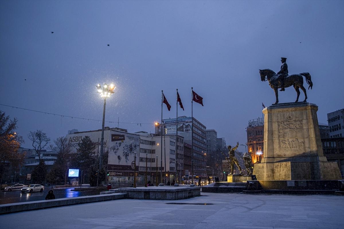 Başkent Ankara'da kar yağışı, kent merkezini beyaza bürüdü.