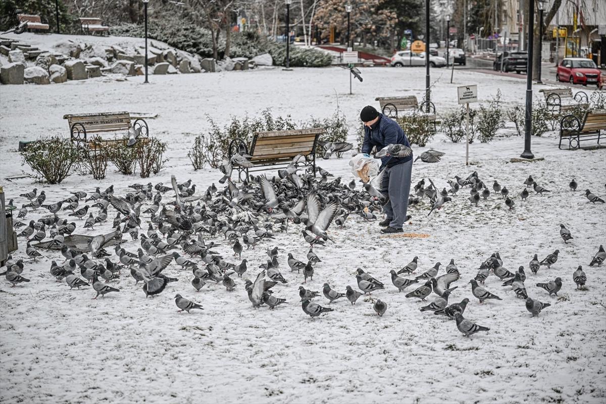 Ankara'da kar yağışı, kentin yüksek kesimlerinde görüldü. Anayasa Parkı'nda, kar nedeniyle yiyecek bulmakta güçlük çeken kuşlar ve hayvanlar için vatandaşlar yem bıraktı.