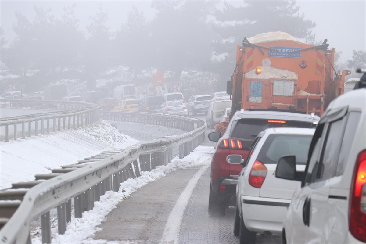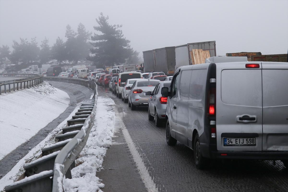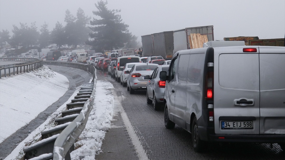 Kar yağışı İstanbul yolunda trafik yoğunluğuna sebep oldu