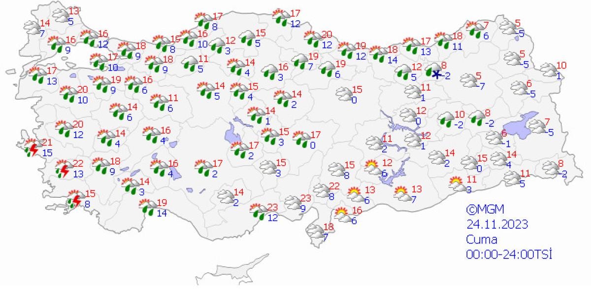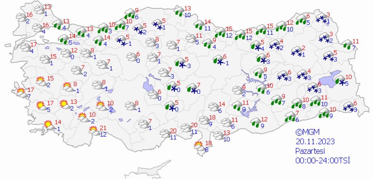 Buna göre bugün 20 il için sarı ve turuncu kodlu uyarı verildi.
