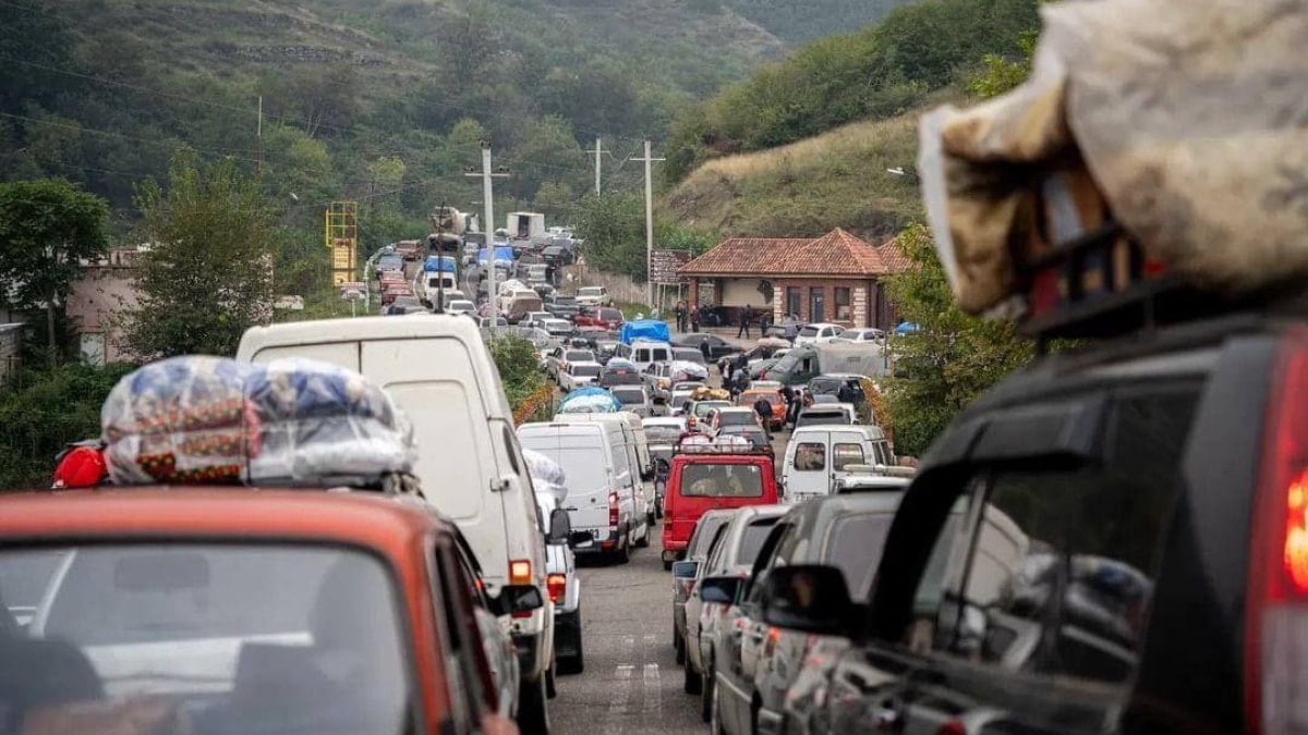 Ermeni ayrılıkçıların silah bırakıp teslim olmalarının ardından Karabağ'dan Ermenistan'a giden yollarda uzun araç kuyrukları oluştu.