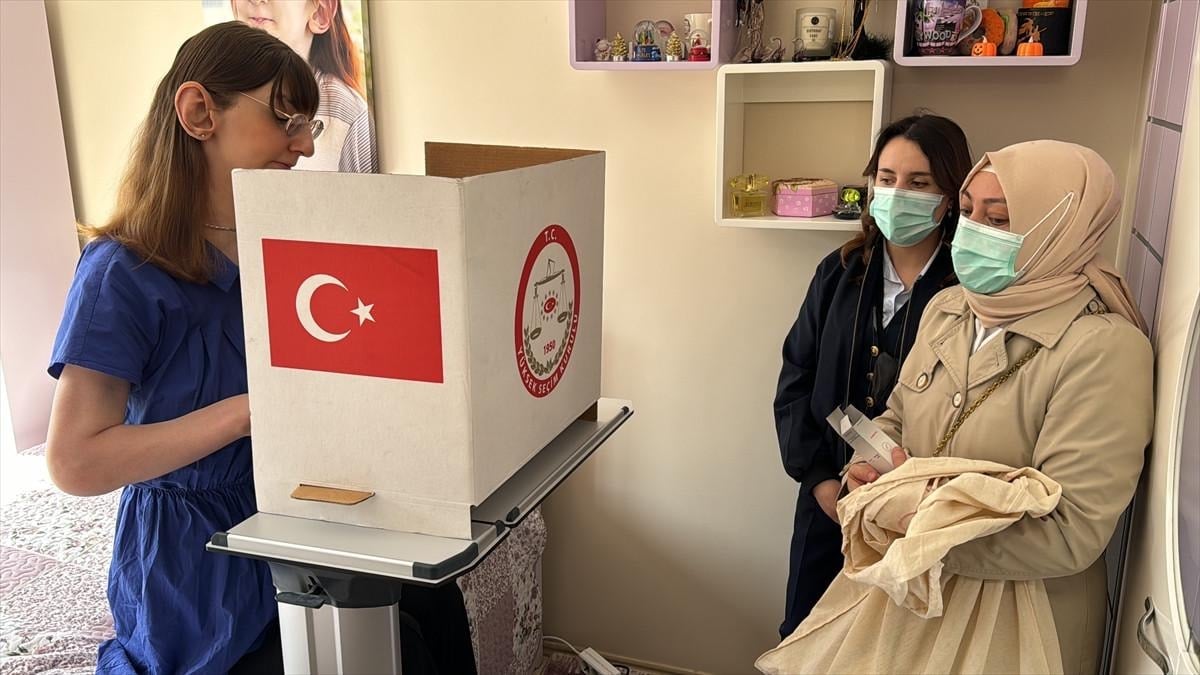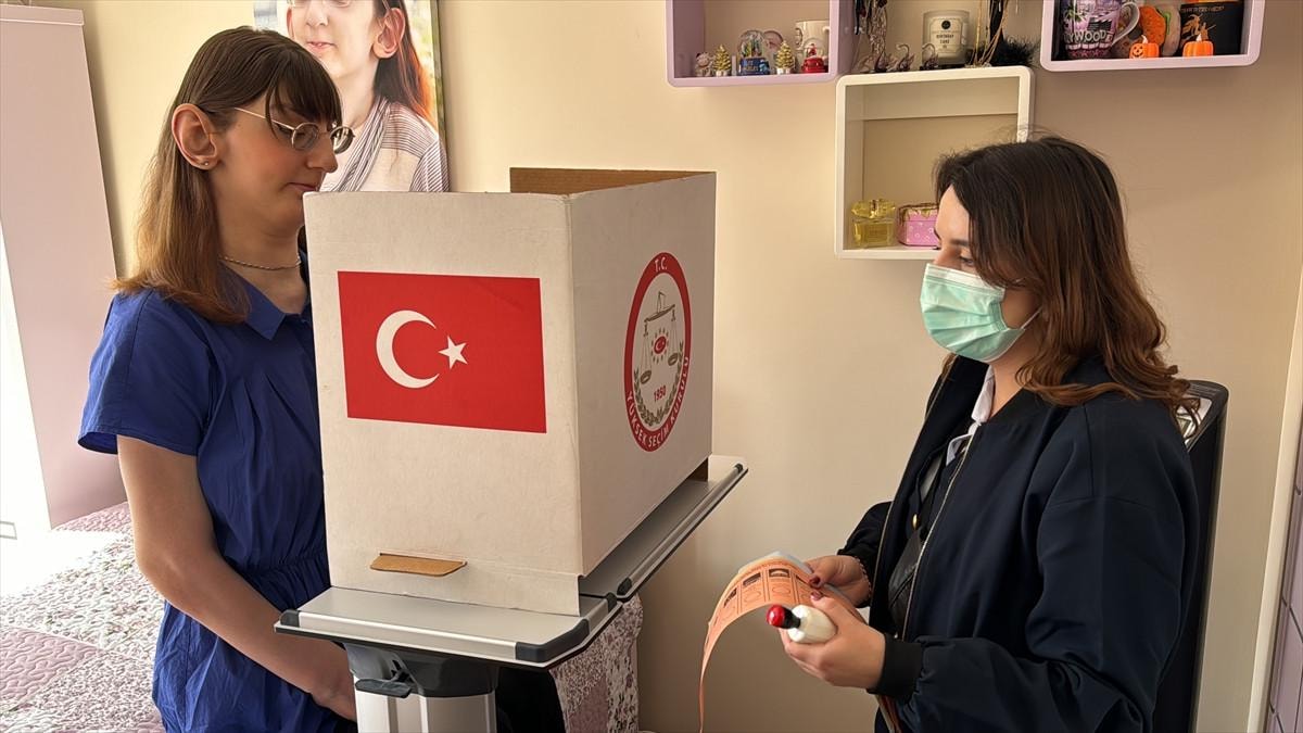 İlçe Seçim Kurulu görevlileri, 2 metre 15 santimetre uzunluğundaki Rümeysa Gelgi'nin Emek Mahallesi'nde bulunan evine seyyar sandık götürdü.