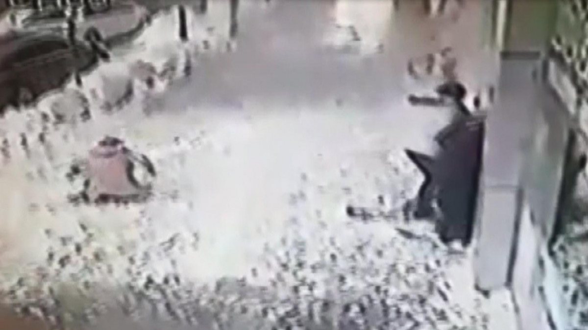 Kadın bir anda yere yığıldı. Ardından panik içerisinde ayağa kalkan kadın arkadaşlarıyla birlikte çevrede bulunan iş yerine sığındı.