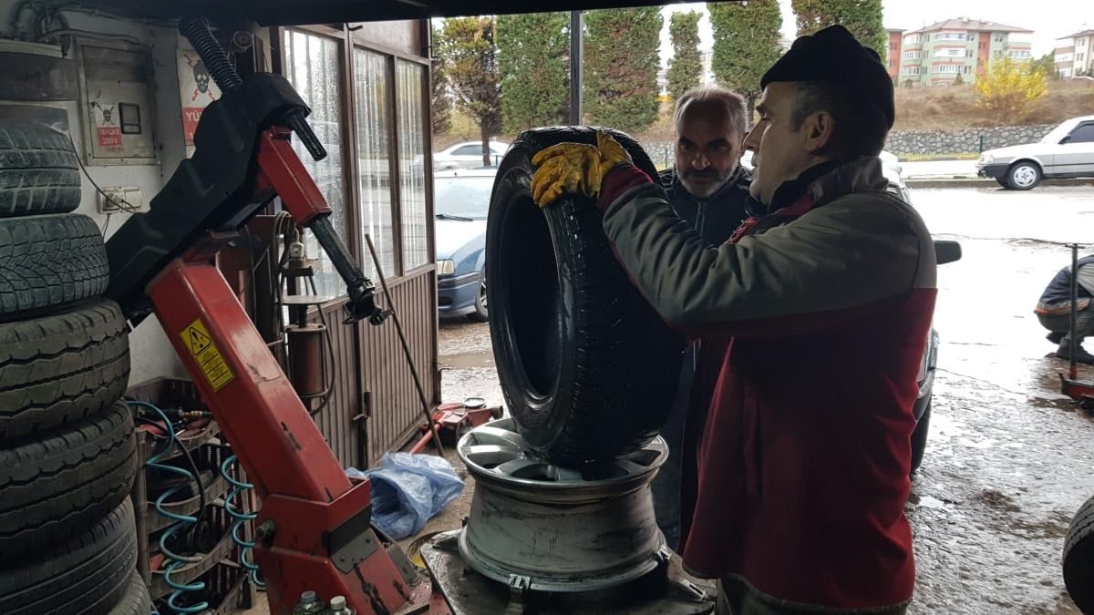 Oto lastik ustası Lütfi Uysal, kar yağışının geçen yıla göre erken gerçekleştiğini ve sürücülerin hazırlıksız yakalandığını belirterek, araç sahiplerinin bir an önce kış lastiklerini taktırmaları gerektiğini söyledi.