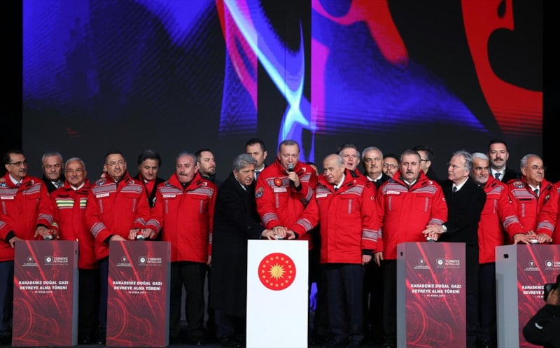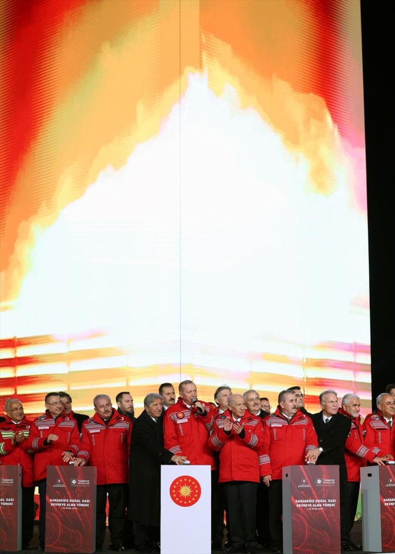 Karadeniz'de keşfedilen 710 milyar metreküplük doğalgaz rezervinin şebekeye verileceği an için Filyos Türkiye Petrolleri Limanı’nda Karadeniz Doğal Gazı Devreye Alma Töreni düzenlendi.