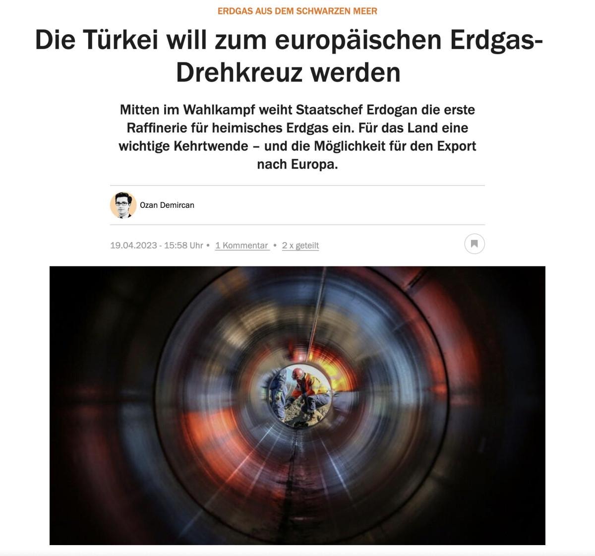 Rusya-Ukrayna savaşından sonra Rusya'nın vanaları kapatması hatırlatılan yazıda, Türk gazının bu alanda çıkış noktası olabileceğine dikkat çekilirken, "Türkiye projesi ile Avrupa'nın doğalgaz endişesini gideremez ama en azından bir nebze hafifletebilir. Özellikle Balkanlar'da Rusya'ya bağımlı olan ve Almanya gibi ağır toplardan daha az tüketen küçük ülkeler gelecekte Rusya yerine Türkiye'den gaz alabilirler." denildi.