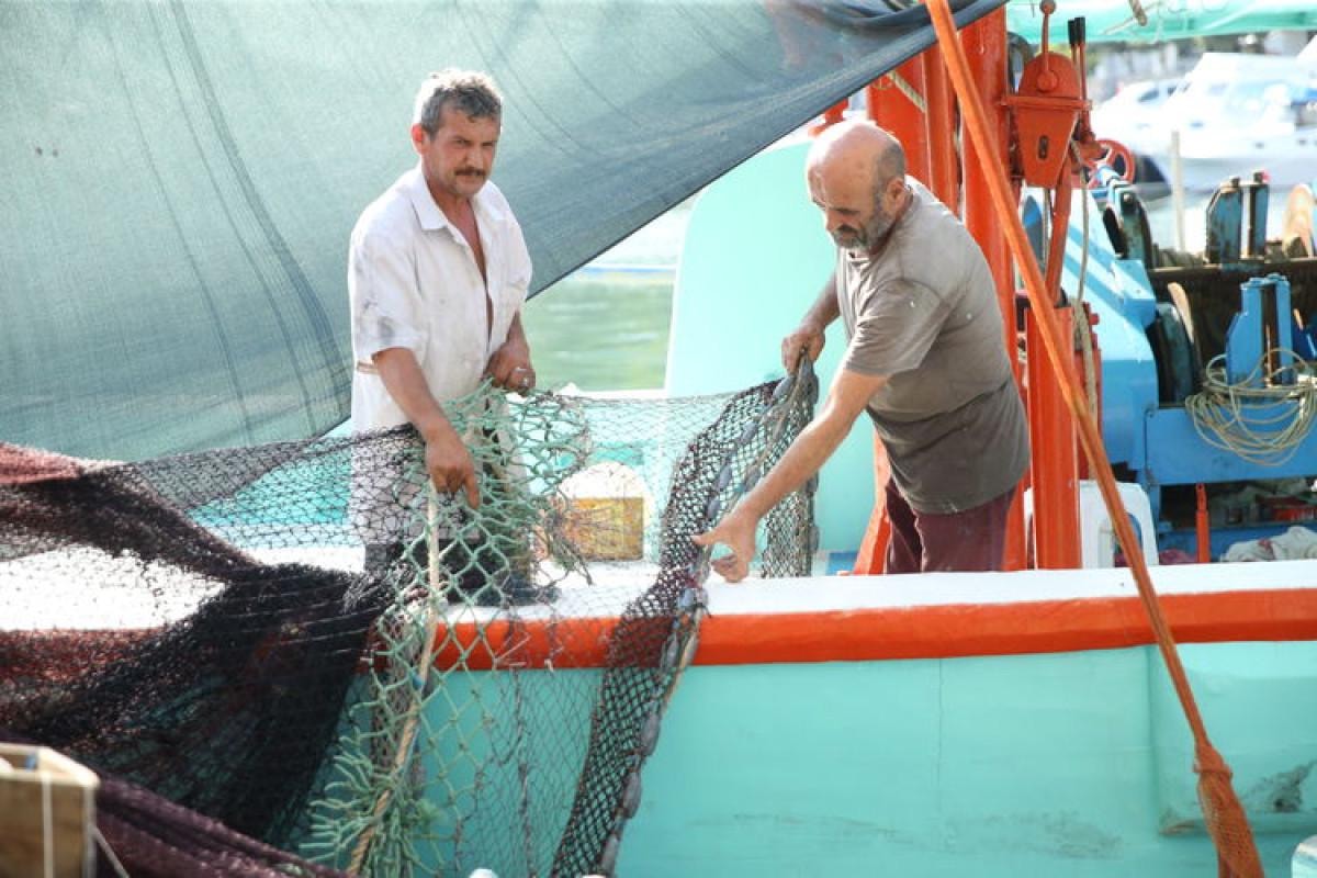 Yaklaşık 30 derece sıcaklıkta imece usulü ile yırtılan ağlarını onaran, teknelerinin yıpranan bölümlerini tamir eden balıkçılar, yeniden denize açılacakları günü sabırsızlıkla bekliyor.