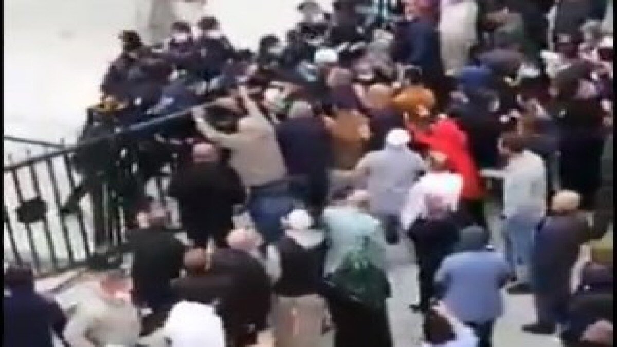 Karantinada kalmak istemeyen umreciler, polis barikatını aşmaya çalıştı.