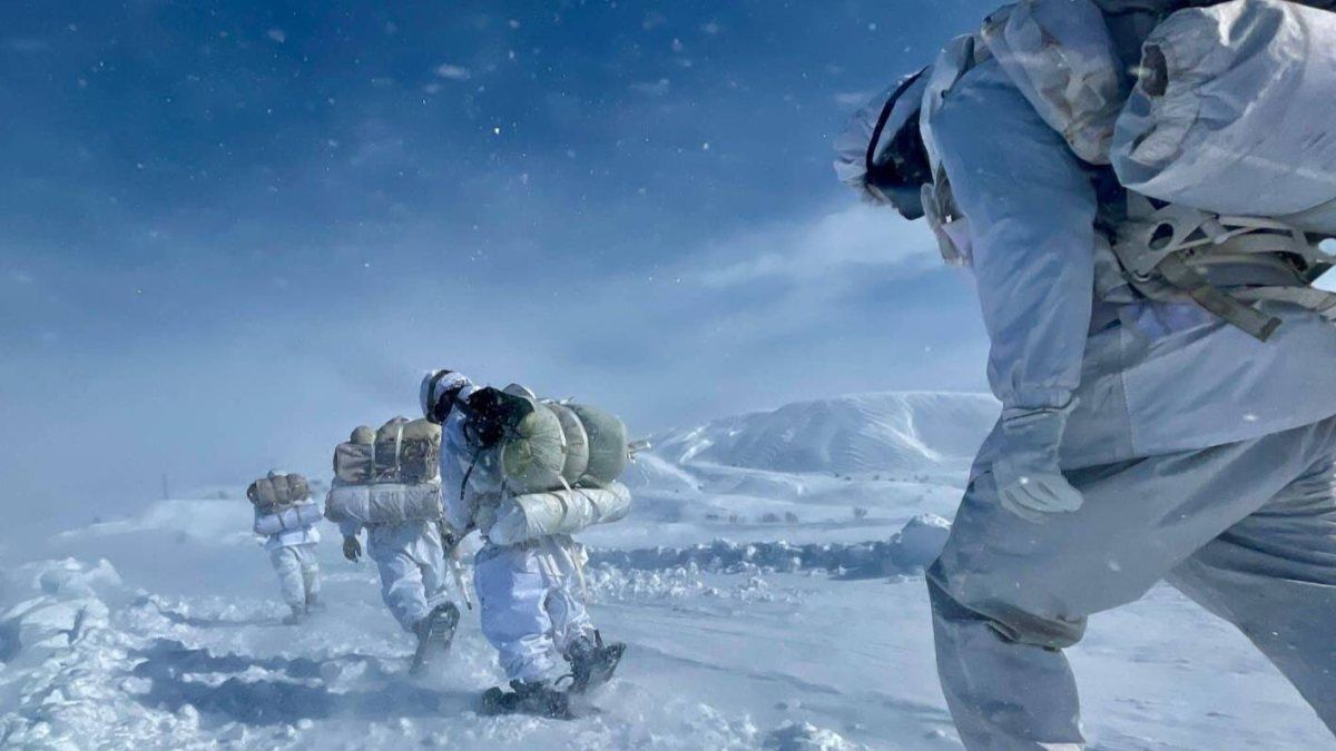 Dağ Komando Tugay Komutanlığı personelinin kalınlığı zirvelerde göreve çıktığı o anlar Milli Savunma Bakanlığı'nın Twitter hesabından paylaşıldı.