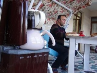 Kışın zinde tutan organik ürünlerin hazırlığını yapan Eminoğlu sobanın üzerinde patates pişirip çayını demledikten sonra sofrasını kurup keyfi yaptı.