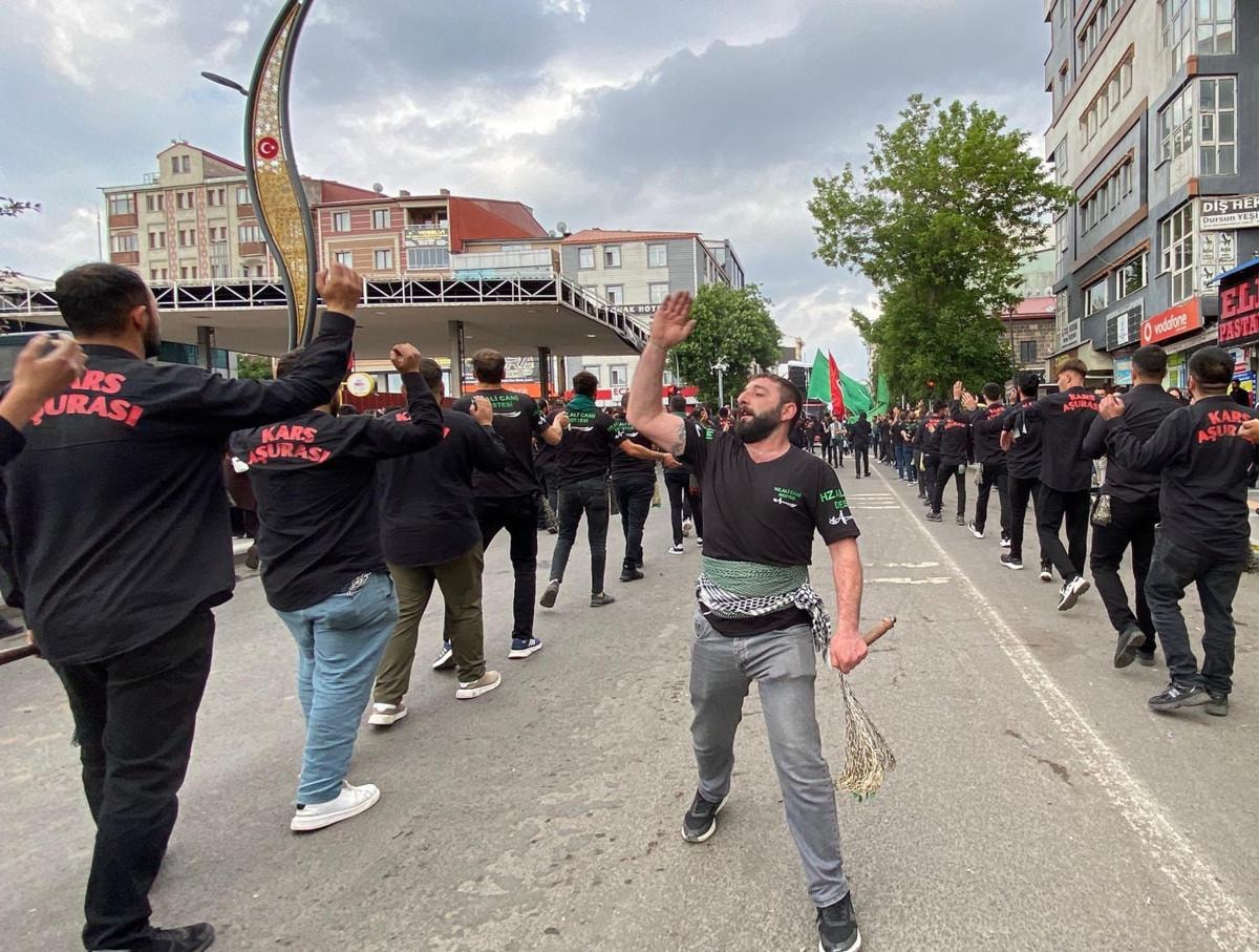 Hazreti Ali Camisi’nden başlayan yürüyüşte ellerinde Türk bayrağı, Atatürk ve Hazreti Ali'nin posterlerini taşıyan katılımcılar, Faikbey Caddesi'nden Kars Şehitliği'ne kadar ağıtlar eşliğinde yürüyüp, sinelerine vurdu.
